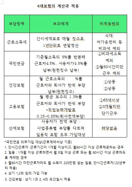 사회보험 계산과 적용(2022년 기준)